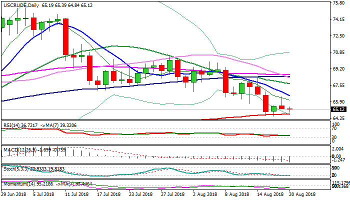 WTI oil price stands at the back foot at the beginning of the week, following fall after strong upside rejection on Friday, weighed by weak industrial data from China and concerns over emerging market economies, with focus on Turkey.