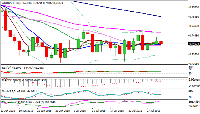 On the other side, bullish scenario requires initial signal on sustained break above 0.7440, with confirmation on lift above 0.7465 (25/26 July tops / 55SMA) and 0.7483 (09/10 July highs).