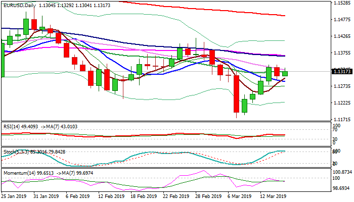 Weekly close above 1.1326 Fibo barrier would generate bullish signal for extension of recovery leg from 1.1176 (2019 low) and expose barriers at 1.1365/72 (converged 55/100SMA’s / 50% of 1.1569/1.1176).