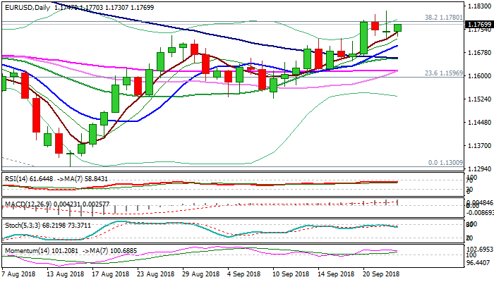 Bullish bias is expected to remain intact while the price holds above 1.1724 (Tuesday’s low) with renewed attempts at 1.18 zone to be anticipated, but stronger action could be expected after Fed announces its decision on Wednesday.