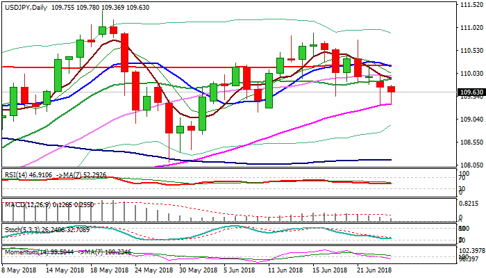Probes into daily cloud (cloud top lays at 109.66) were so far contained by rising 55SMA (109.38) which guards next pivotal support at 109.17 (Fibo 61.8% of 108.11/110.90 ascend).
