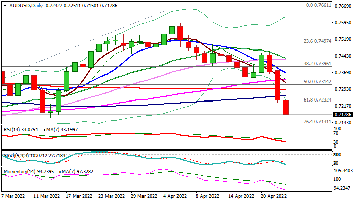 Fresh weakness in early Monday hit the lowest in nine weeks and tested solid support at 0.7148 (200WMA), after emerging below ascending daily cloud (spanned between 0.7204 and 0.7277).