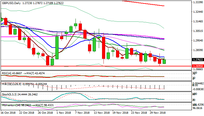 Cable attempts to recover ground and moved higher in early European trading on Tuesday, after strong upside rejection on Monday and subsequent weakness that was contained by key near-term support at 1.2695 (30 Oct low).