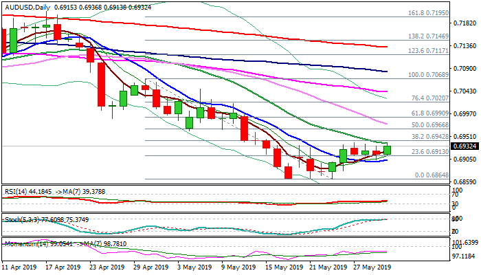 Bullish scenario requires close above 20SMA and 0.6942 Fibo barrier to signal extension of recovery from 0.6864 base.