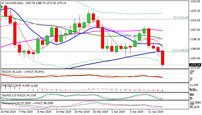 Fresh bears cracked important supports at $1276/75 (21/23 Jan higher base / Fibo 38.2% of $1160/$1346) and close below would generate bearish signal for extension steep fall from $1309 lower top towards $1263 (weekly cloud top).
