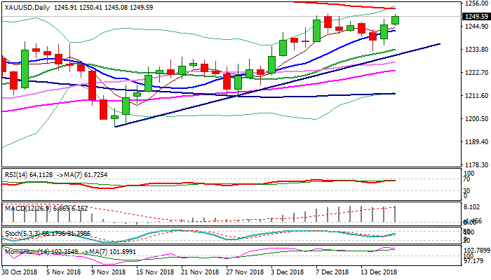 Spot gold retests $1250 barrier (10 Dec high) on Tuesday, in extension of previous day’s rally, signaling full retracement of $1250/1232 corrective phase and possible continuation of larger uptrend from $1196 (13 Nov low).