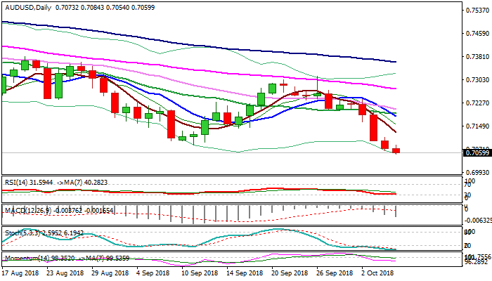 Thursday’s close below key support at 0.7085 (11 Sep low) was strong bearish signal for continuation of larger downtrend from 0.8135 (2018 high, posted on 26 Jan), which needs confirmation on weekly close below 0.7085.