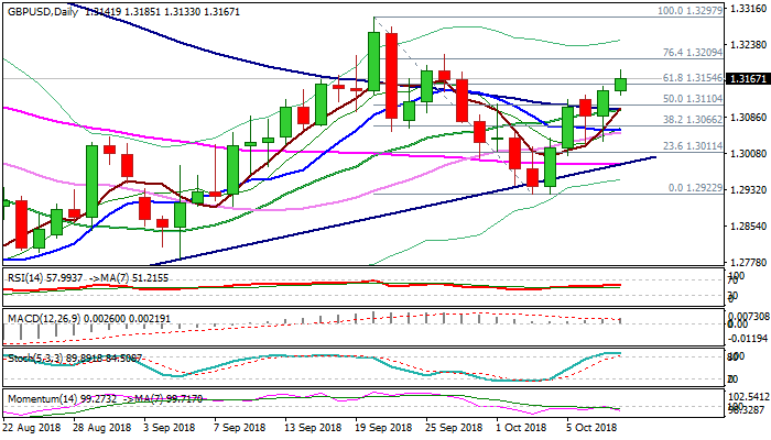 Fresh extension higher on Wednesday broke above pivotal barrier at 1.3154 (Fibo 61.8% of 1.3297/1.2921 bear-leg) with close above to confirm bullish signal for extension above 1.3200 (Fibo 76.4% at 1.3209 and 26 Sep lower top at 1.3217).