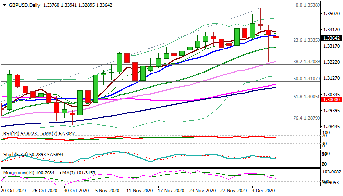 Cable remains at the back foot and probes again below 1.33 handle in US trading on Tuesday, despite initial positive signal from Monday’s downside rejection at 1.3224 and subsequent bounce near 1.3400 zone.