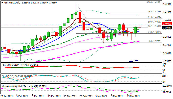 Firm break of 1.40 barrier (also 50% retracement of 1.4238/1.3778 pullback) is crucial for fresh bulls, as this would signal an end of corrective phase from 1.4238 peak and confirm a higher low at 1.3778.