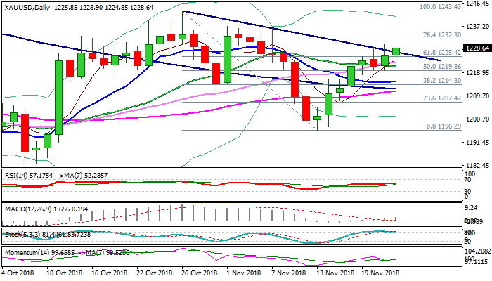 Close above $1225/27 pivots would generate bullish signal for extension towards $1232 (Fibo 76.4%) and would expose lower platform at $1247 and 26 Oct spike high at $1243.