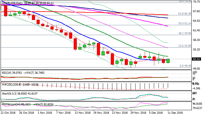 WTI oil price bounced from temporary base at $50.60 zone (lows of past three days) where pullback from recovery high at $54.54 found footstep.