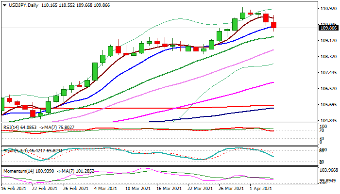 Failure to close below 110 handle would weaken bears but negative near-term bias is expected to remain while the action stays below 5DMA (110.39).