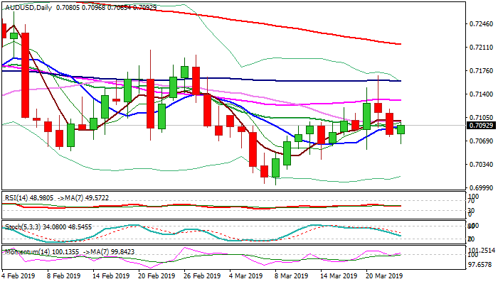 Limited recovery under 0.71 handle would keep the downside vulnerable for fresh attempts at cracked pivotal Fibo support at 0.7065 (Fibo 61.8% of 0.7003/0.7168) that would unmask daily cloud base (0.7031) and key support at 0.7003 (8 Mar low).