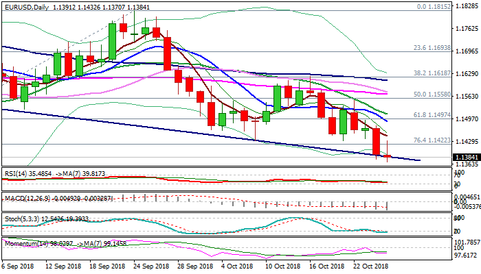 The Euro dipped to new nine-week low at 1.1370, maintaining strong bearish bias and lacking stronger excitement as unchanged ECB was in line with expectations and balanced comments of President Mario Draghi offered nothing new.