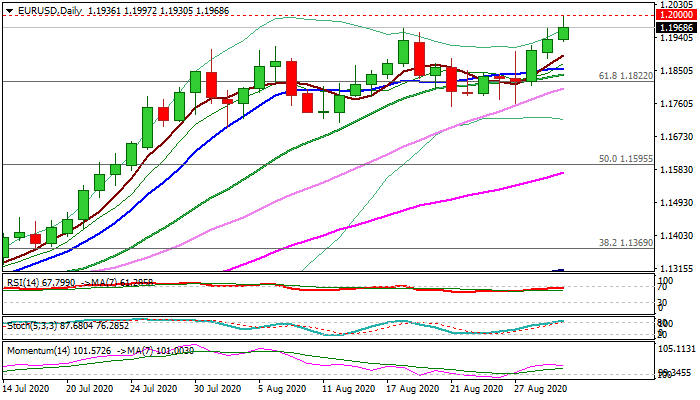 Dips are expected to hold above 1.1900 support zone (former tops / rising 5DMA) to keep bulls intact.