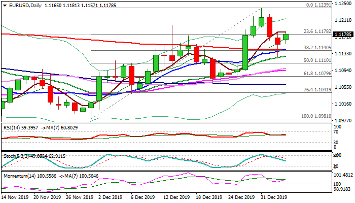 The Euro moved within narrow range in early Monday’s trading after strong pullback from new multi-month high (1.1239) in past two days stalled at key supports at 1140 zone (10/200DMA golden-cross / Fibo 38.2% of 1.0981/1.1239) despite Friday’s spike to 1.1124.