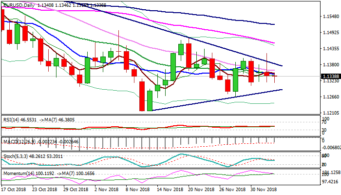 Bullish scenario requires break and close above trendline resistance (1.1380) and tops of 29/30 Nov at 1.1400, to signal further advance.