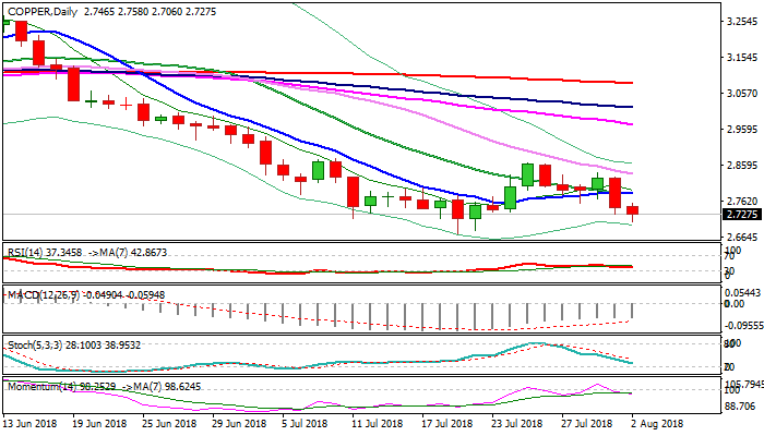 Fresh bearish extension approached psychological $2.70 support, the last obstacle en-route to key support at $2.6720 (19 July low, the lowest since July 2017), violation of which would signal extension towards $2.6280 (50% retracement of $1.9360/$3.3200, Jan 2016/Dec 2017 rally).