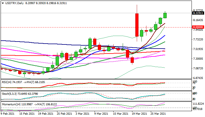 USDTRY rose to one-week high on Tuesday and is on track to fully retrace a partial recovery from last week’s 8.5015 high.