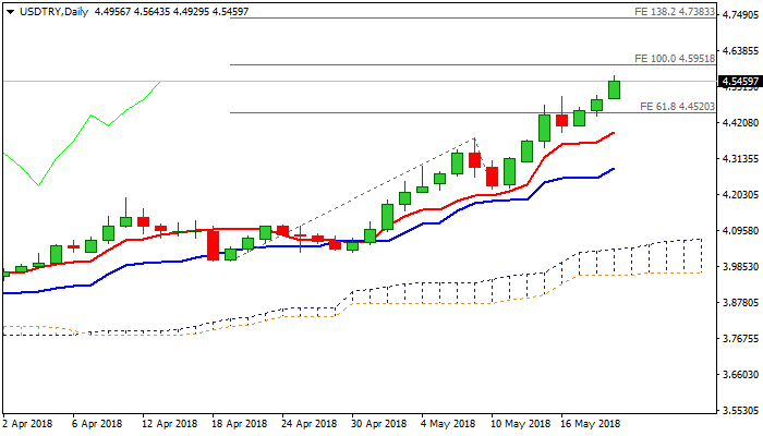 The USDTRY hit new record high at 4.5643 in early trading on Monday, extending steep upleg from 3.7153 (2018 low), as the pair advanced nearly 19% since the beginning of the year.