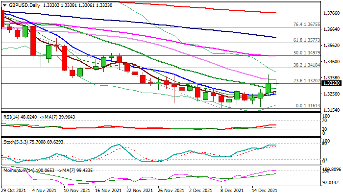 Fresh bulls eye next pivotal barrier at 1.3418 (Fibo 38.2% of 1.3834/1.3161 fall), break of which would further strengthen near-term structure and generate initial reversal signal, after larger fall was contained by 200WMA).