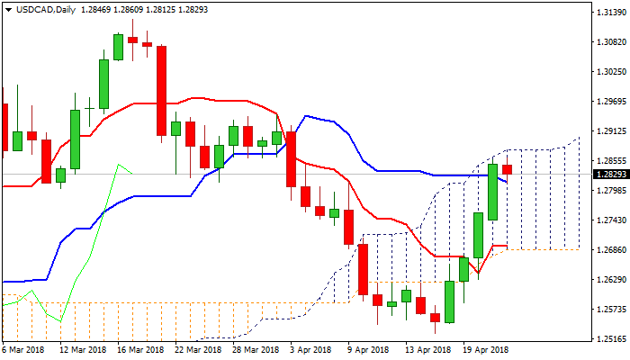The pair holds within 50-pips consolidation on Tuesday after strong four-day rally was capped by daily cloud top (1.2862) on Monday and today’s action failed to extend further as cloud is widening and top lies at 1.2875.