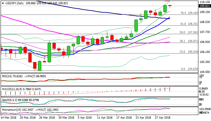 Broader bulls are consolidating under psychological 110.00 barrier which was approached on Tuesday’s rally to 109.88 (the highest since early Feb).