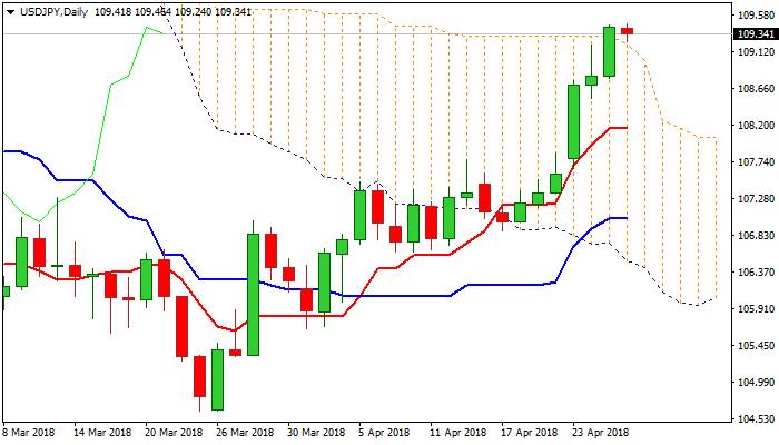 The pair trades within narrow consolidation on Thursday, holding under new high at 109.46, posted after another strong rally on Wednesday and retested today.