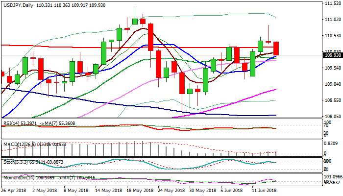 Strong upside rejection on Wednesday, marked by daily candle with long upper shadow, formed bull-trap pattern, with further easing on Thursday completing reversal pattern on daily chart.
