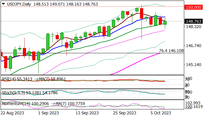 Initial bullish signal to be expected on close above 10DMA (149.12) which will open way for retest of pivotal barriers at 150.00 (psychological) and 150.16 (2023 high), guarding 2022 peak / multi-decade high (151.94).