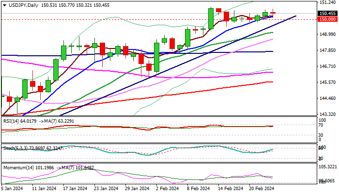 Break of February’s peak at 150.88 to generate fresh bullish signal for extension towards key barriers at 151.90/94 (2023 2022 peaks) the highest in over three decades.