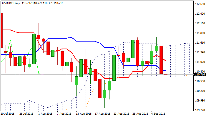The pair holds in red on Friday and probed below daily cloud base (110.64), following strong fall on Thursday (down 0.69% for the day in the biggest one-day fall since 20 July).