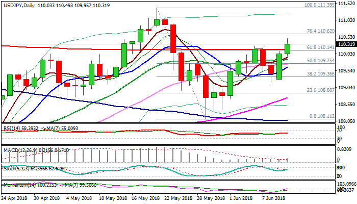 Bulls eye initial target at 110.62 (Fibo 76.4% of 111.39/108.11 descend), break of which would expose psychological 111.00 barrier and risk extension towards key barriers at 111.36/39 (FE 100% of the wave C from 109.19 / 21 May peak).