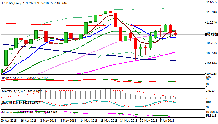 Firm break below 109.44 would generate strong bearish signal for extension of pullback from 110.26/22 double-top, towards daily Tenkan-sen (109.18) and possible extension towards the top of rising and widening daily cloud (108.62) on stronger bearish acceleration.