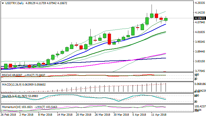 The pair started to gain traction on Monday and bounced to 4.1175 after pullback from new record high at 4.1932 (11 Apr) found footstep at 4.0720, just above rising 10SMA, which currently lies at 4.0693.
