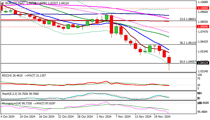 EURUSD spiked to two-year low on Friday following weaker than expected data from Germany Q3 GDP / Nov PMI) and Eurozone (Nov PMI) which further soured already weak sentiment.
