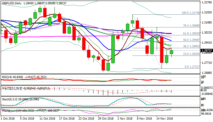 Recovery needs break above pivotal barriers at 1.2895 (Fibo 38.2% of 1.3174/1.2722) and 1.2916 (falling 20SMA) to generate bullish signal for stronger recovery, while the downside would remain vulnerable if 20SMA limits u fresh bulls.
