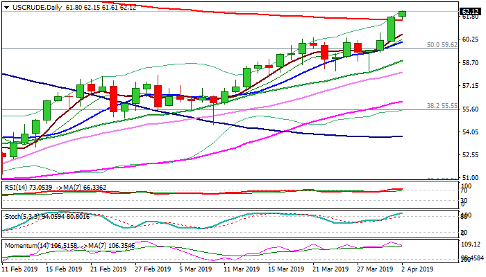 WTI oil rose to new nearly five-month high above $62 on Tuesday, in extension of Monday’s 2.7% rally (the second biggest one-day gains in 2019).