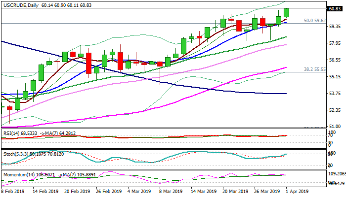 WTI oil price advances further on Monday and on track to mark eventual break above two-week congestion, after last Friday’s spike to $60.71 proved to be false break.