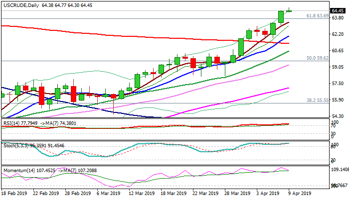WTI oil extends advance to new five-month high at $64.77 on Tuesday, additionally boosted by threats for further supply tightening on rising violence in Libya.
