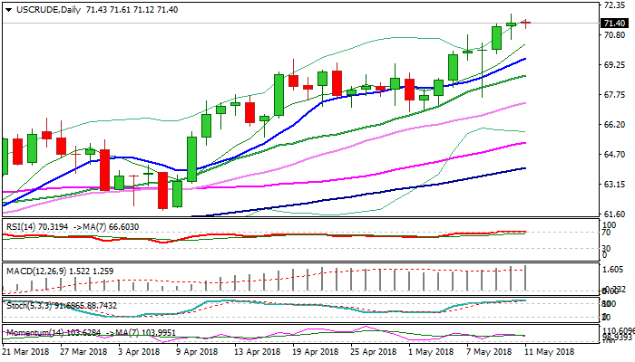 WTI oil is holding within tight consolidation range under new 3 ½ year high at $71.86 on Friday, taking a breather after strong rally during the week.