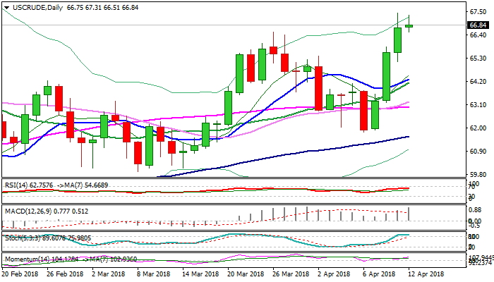 Completion of $66.64/$58.06 corrective phase and close above $66.64 (25 Jan former high), generated bullish signal for extension of recovery phase from $26.04 (11 Feb 2016 low), as bulls cracked next barrier at $66.75 (Fibo 50% of $107.45/$26.04 fall).