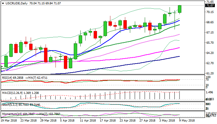WTI oil cracked $71 barrier on Wednesday, hitting new 3 ½ year highs, on strong bullish acceleration following decision of the US to pull out from international nuclear deal with Iran.